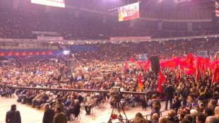 На украшенном в красный цвет стадионе на мероприятии Партийной организации Аттики КПГ из уст тысяч трудящихся и молодёжи звучали лозунги: “Долой иллюзии, либо на стороне капитала, либо на стороне рабочих” и “Наше будущее не капитализм, а новый мир – социализм”.