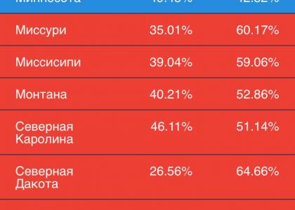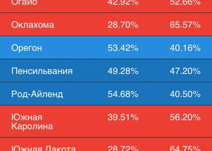 В Соединённых Штатах прошли президентские выборы. Подсчёт голосов завершился на Восточном побережье и в штатах Среднего Запада США.