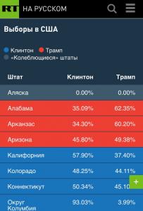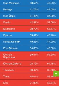 По предварительным прогнозам газеты The New York Times и телеканала CNN, Дональд Трамп набирает 197 голосов коллегии выборщиков, а Хиллари Клинтон — 131. Трамп в напряжённой борьбе отыграл лидерство в ключевых штатах Флорида и Техас.