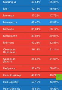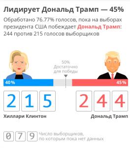 Сейчас у Трампа 244 голоса выборщиков. За него проголосовала более 53 млн. избирателей, за Клинтон - 52 млн.
