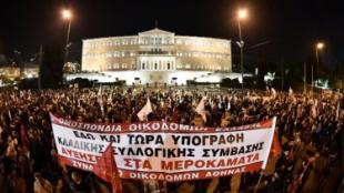 В митинге в Афинах, у здания парламента, приняла участие делегация КПГ во главе с Генсеком ЦК КПГ Д. Куцумбасом.