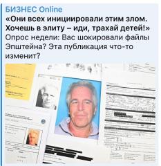 «Они всех инициировали этим злом. Хочешь в элиту – иди трахай детей!». Издание «БИЗНЕС Online» провело опрос недели: «Вас шокировали файлы Эпштейна? Эта публикация что-то изменит?»