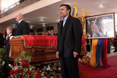 По красной ковровой дорожке в военную академию в сопровождении охраны проследовал президент Ирана Ахмадинеджад. Венесуэльские репортеры во время прямого эфира вспоминают о тесном сотрудничестве Ирана и Венесуэлы в антиимпереалистической борьбе. После официального подтверждения смерти Чавеса иранский лидер заявил: «У меня нет никаких сомнений, что он вернется также, как и благочестивый Иисус, как совершенный человек».