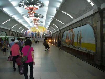 В Пхеньяне чётко ходят трамваи, троллейбусы, автобусы, нередки здесь и омнибусы (двухэтажные автобусы). В метро (оно небольшое: две линии, 17 остановок) — просторно и чисто, электропоезда, как мы убедились, движутся также часто, как, вероятно, и в Москве. Стоимость проезда — сущие гроши.