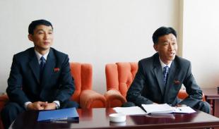 Они встретились в Пхеньяне с заместителем начальника департамента по научной работе государственного Управления по освоению космоса КНДР, доктором наук Ким Чон Хо (на снимке — справа) и представителем по внешним делам этого управления Пе Чон Хеком, которые в начале беседы заметили, что это вообще первое интервью, которое дают представители их ведомства СМИ России