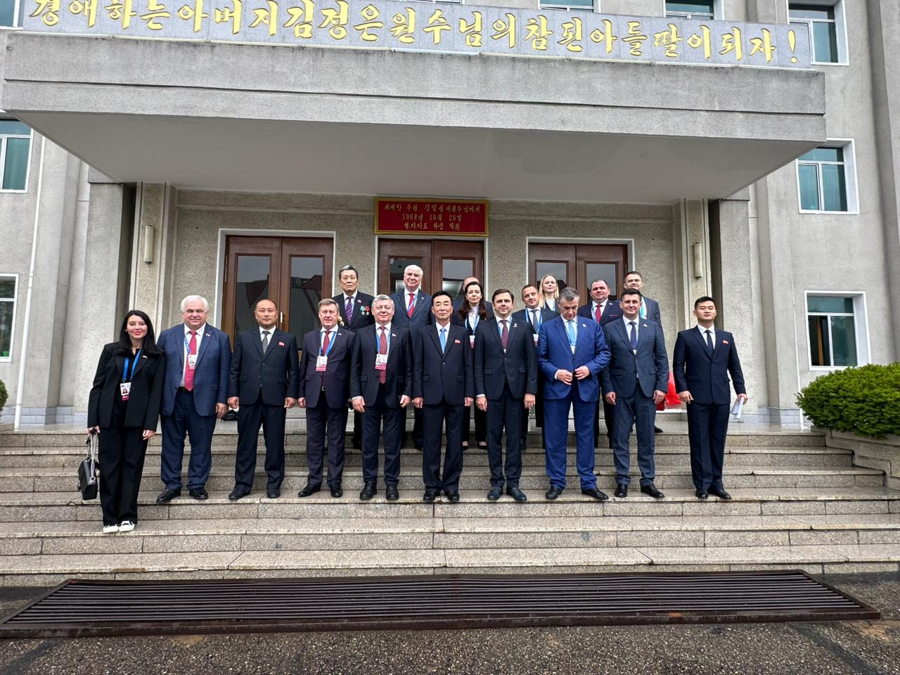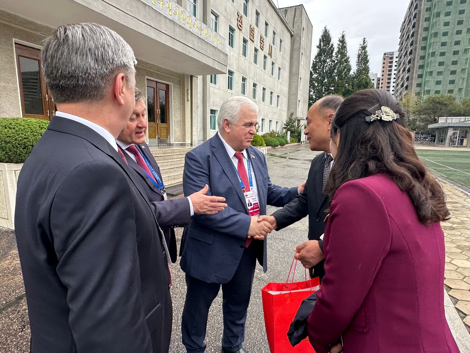 Затем делегаты посетители Пхеньянский институт иностранных языков и функционирующий на базе Института Центр Русского языка, который был открыт в 2009 году Фондом «Русский мир». Совместно с Посольством России в КНДР, КПРФ и межпарламентская Группа Дружбы с КНДР ведет активное сотрудничество с Институтом по вопросу продвижения русского языка. Так, в июне 2025 года по приглашению Председателя ЦК КПРФ Г.А. Зюганова и первого заместителя Председателя ЦС СКП-КПСС К.К. Тайсаева в Москву прибыла делегация из Пхеньянского института иностранных языков для участия в церемонии награждения победителей Международного конкурса по русскому языку «Расскажи миру о своей Родине». В конкурсе приняла участие ученица Института Хван Да Ми – она была среди тех ребят, чей открытый урок делегация КПРФ посетилиав ходе апрельского визита в КНДР. Визит корейской делегации в Москву получил огромный резонанс в КНДР и дал мощный импульс популяризации русского языка среди корейской молодежи.