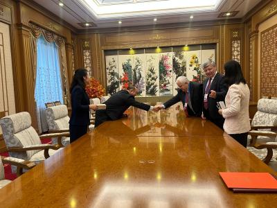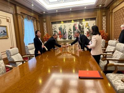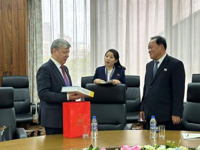 Затем прошла встреча члена Президиума ЦК КПРФ, Губернатора Орловской области А.Е. Клычкова с Председателем Народного комитета провинции Южный Хванхэ товарищем Ли Чхоль Маном. В повестке дня встречи по развитию межрегионального экономического и культурного сотрудничества – в ближайшее время планируется заключить официальное Соглашение о взаимодействии между Орловской областью и провинцией Южный Хванхэ. Стороны отметили, что существует большой потенциал для двустороннего сотрудничества по целому ряду направлений – в сфере торговли, науки, образования и культуры – и договорились продолжать активные контакты. Андрей Клычков пригласил товарища Ли Чхоль Мана посетить Орловскую область с официальным визитом. В конце встречи делегация вручила Председателю Партийного комитета подарки КПРФ и сувениры от Орловской области.