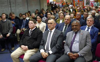 На акции солидарности присутствовали послы Венесуэлы и Анголы, представители дипломатических миссий Никарагуа и целого ряда других стран. Был представлен актив столичных организаций КПРФ и ЛКСМ РФ. Зал городского комитета был полон.