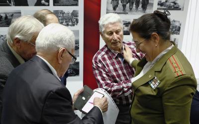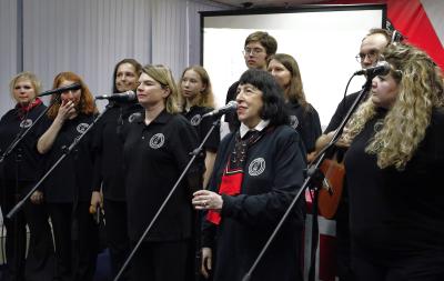 В ходе торжественного вечера демонстрировались видеоматериалы. Перед участниками выступил ансамбль политической песни “Гренада”. Вела встречу Т.И. Десятова.