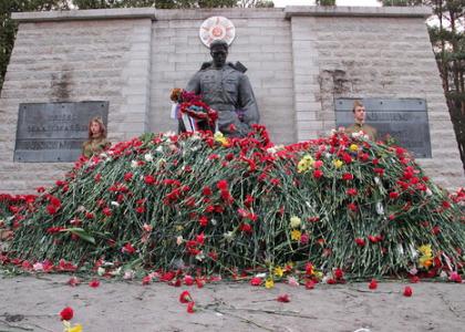 9 мая 2013 года. Таллин. Бронзовый солдат. Памятник воинам-освободителям. Еще совсем недавно раздавались требования националистов о сносе этого памятника, а сегодня он утопает в цветах.
