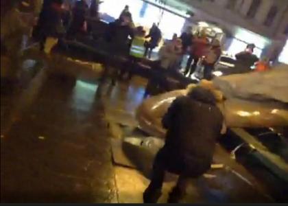 Вечером в воскресенье в Киеве группа неизвестных снесла с пьедестала памятник Ленину, который стоял на Бессарабской площади недалеко от улицы Крещатик.