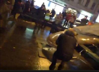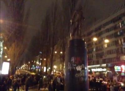 Вечером в воскресенье в Киеве группа неизвестных снесла с пьедестала памятник Ленину, который стоял на Бессарабской площади недалеко от улицы Крещатик.