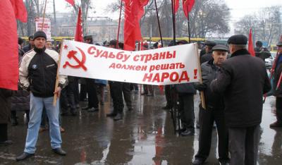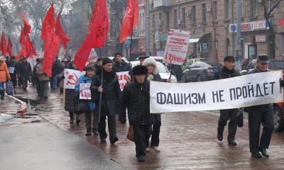 Понимая всю опасность ситуации в стране, коммунисты провели марш с призывами остановить бандеровский путч, не допустить скатывания страны к состоянию гражданской войны, инспирированной извне по типу Ливии и Сирии. На митинге, прошедшем по завершении марша краснознамённой колонны, коммунисты призвали к скорейшему возвращению ситуации в конституционное русло и привлечению всех виновных в массовых беспорядках и вандализме к уголовной ответственности. Также, в связи с открытыми призывами к свержению конституционного строя, актами вандализма, разжиганием межнациональной розни и массовым причинением вреда здоровью различных степеней тяжести сотрудникам МВД при исполнении обязанностей – запретить политическую партию ВО «Свобода», которая на данный момент абсолютно беспрепятственно пропагандирует фашизм и радикализацию в украинском обществе.