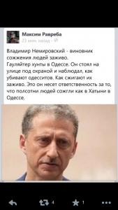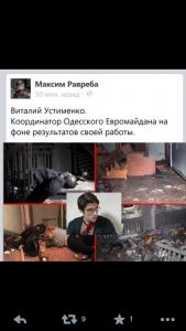 "Мы проиграли эту битву, потому как не были собранными и организованными. Но все погибшие из Куликова поля являются героями. Они пошли на верную смерть. Это Одесская Хатынь... Я когда отдышался, пришел в себя (страшно болела голова, я вообще не мог говорить!), набрал телефонный номер своего друга, который был в здании Дома профсоюзов где-то на нижних этажах... Но чей-то голос ответил в трубку, что он мёртв... Я никогда не забуду этого ужаса..." - подытожил собеседник и, сославшись на то, что будет сейчас по имеющимся у него номерам телефонов выяснять, кто остался в живых, пожелал прекратить беседу.