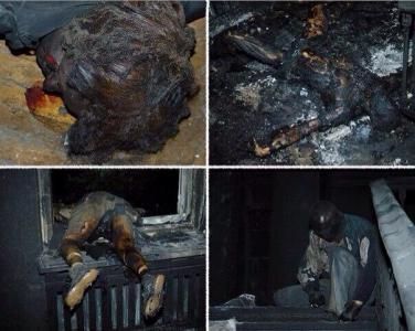 По словам Юрия, по отношению к ним сразу же применили травматическое и огнестрельное оружие. "Парня, находившегося возле меня, сразу же "уложили". Нас загнали внутрь здания и отрезали все пути отхода. Я очутился в правом крыле 3-го этажа, нас человек десять было в какой-то комнате. Правосеки начали забрасывать здание "коктейлями молотова" и стрелять по окнам. Первый этаж горел, потом - выше, дым распространился по коридорам, выйти было нельзя... Мы открывали и выбивали окна, но это не спасало: дым с улицы затягивало в помещение. Кто-то выпрыгивал, их внизу добивали. Снизу кричали "Слава Украине" и "Смерть врагам"... Это был ад! Приехали пожарники, начали тушить 1-й этаж..." - рассказывает очевидец.