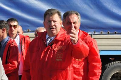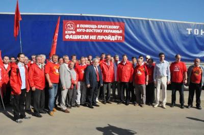 Сегодня утром в 9.00 из «Совхоза им Ленина» делегация депутатов Государственной Думы во главе с заместителем Председателя ЦК КПРФ В.И. Кашиным направила колонну с гуманитарным грузом на Юго-Восток Украины в Луганскую и Донецкую Народные Республики. В отправке груза также приняли участие Руководитель Штаба по оказанию гуманитарной помощи жителям Юго-Востока Украины, первый заместитель Председателя Совета СКП-КПСС, секретарь ЦК КПРФ, депутат Госдумы ФС РФ К.К. Тайсаев, секретарь Московского областного отделения КПРФ, депутат Законодательного собрания Московской области А.А. Наумов, член ЦК КПРФ, депутат Госдумы ФС РФ В.Р. Родин, первый секретарь Московского областного отделения КПРФ, депутат Госдумы ФС РФ Н.И. Васильев, директор ЗАО «Совхоз имени Ленина» Павел Грудинин, комсомольцы, коммунисты Ленинского РК КПРФ.