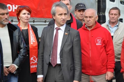 Затем к собравшимся обратился первый секретарь МК КПРФ, депутат Государственной Думы Николай Васильев: