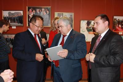 Она приурочена к юбилейному XXXV Съезду СКП-КПСС, который пройдет в Минске 1 ноября. Благодаря нашим друзьям, нашим коллегам, коммунистам Белоруссии и прекрасному коллективу «Музея Истории Минска» мы открываем сегодня эту уникальную выставку. Передаю приветствие всем участникам нашего мероприятия от Председателя ЦК КПРФ, Председателя Совета СКП-КПСС Геннадия Андреевича Зюганова», - отметил в своем выступлении Первый заместитель Председателя Совета СКП-КПСС, Секретарь ЦК КПРФ, депутат Государственной Думы ФС РФ Казбек Куцукович Тайсаев.
