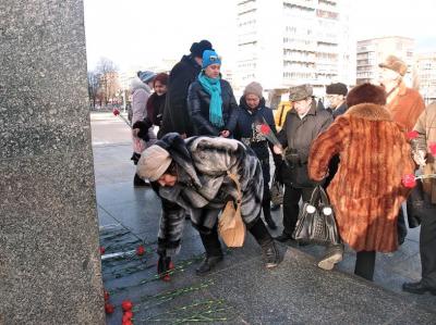 Активисты Союза Коммунистов Луганщины возложили красные гвоздики к памятнику В.И. Ленину в центре Луганска.