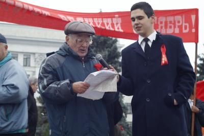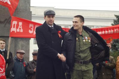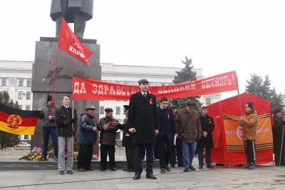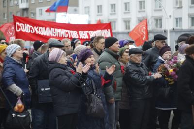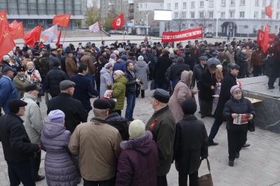 Уже с утра 7 ноября к памятнику В.И. Ленину, установленному на центральной площади Луганска, названной в честь Героев Великой Отечественной войны, стали стекаться местные жители и гости столицы ЛНР. Несмотря на военное положение, сотни жителей республики собрались здесь на праздничный митинг в честь 100-летия Великого Октября, организованный Компартией ЛНР, Союзом Коммунистов Луганщины, Союзом Советских Офицеров ЛНР и местным комсомолом.