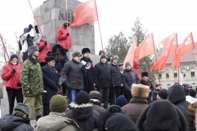 Перед собравшимися выступили: депутат Парламента ЛНР Александр Андриянов, председатель Союза Советских Офицеров Александр Афонин, первый секретарь ЦК комсомола ЛНР Глеб Гринько, секретари ЦК комсомола Станислав Рожнов и Иван Нацаев.