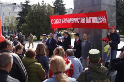 22 апреля 2018 г. коммунисты ЛНР провели традиционный митинг и возложение цветов к памятнику основателю Советского государства Владимиру Ильичу Ленину.