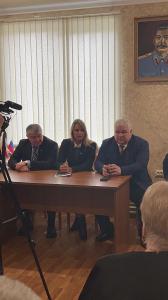 Состоялась встреча с Первым секретарем ЦК КП РЮО Кочиевым Станиславом Яковлевичем и партийным активом. Казбек Куцукович Тайсаев передал слова приветствия от Зюганова Геннадия Андреевича, руководства партии и вручил партийные награды.