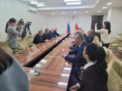 Делегация Государственной Думы РФ встретились с Председателем Парламента РЮО Алборовым Аланом Юрьевичем, депутатами Парламента Южной Осетии. Встречу приурочили ко дню Парламентария РЮО.
