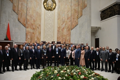 Затем международные наблюдатели приняли участие в торжественной церемонии возложения цветов к Монументу Победы в центре Минска, который был возведён в память о воинах Советской армии, партизанах и подпольщиках, погибших в годы Великой Отечественной войны - одному из символов столицы Беларуси. Возложение цветов к мемориалам, посвященным общей Победе, — традиция, которая соблюдается парламентариями стран Содружества. Особое значение эта акция имеет в наступившем 2025 году, который объявлен в СНГ Годом 80-летия Победы в Великой Отечественной войне – Годом Мира и Единства в борьбе с нацизмом.