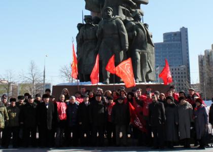 Сегодня, 27 марта 2013 года, в Москве состоялось возложение цветов к памятнику Вождю Мирового пролетариата В.И. Ленину на Калужской площади. Возложение было приурочено к 20-й годовщине создания Союза коммунистических партий – КПСС.