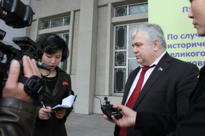 - Экспозицию организовали Трудовая партия Кореи и КПРФ совместно с СКП-КПСС. Изначально у нас созрела идея проведения выставки, она была озвучена корейским товарищам, и они с радостью поддержали эту идею. Подготовка проходила несколько месяцев. Первоначально была сформирована рабочая группа, в которую вошли представители Трудовой партии Кореи, а также сотрудники Отдела ЦК КПРФ по национальной политике и аппарата секретариата Совета СКП-КПСС: Ан Хен Мин – заведующий сектором международного отдела Трудовой партии Кореи, Сон Гван Су – Советник Посольства КНДР в РФ, Хонг Хенг Ир – заместитель руководителя главного управления по выставочным делам за рубежом, Чермен Дудати – заведующий Отделом ЦК КПРФ по национальной политике, Марина Карпенко – заместитель заведующего Отделом ЦК КПРФ по национальной политике, непосредственно руководившая проектом, Владислав Бестолов – зав. сектором Отдела ЦК КПРФ по национальной политике, Светлана Жихарева – руководитель пресс-службы СКП-КПСС.