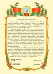 Благодаря Вашей последовательной и эффективной деятельности совместно с Вашими соратниками Вы добились заметного повышения авторитета и роли Коммунистической партии Российской Федерации, укрепления ее рядов.