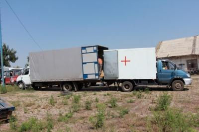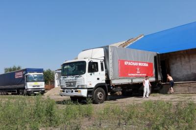 Утром на одном из складов неподалеку от границы России с ЛНР фуры начали разгрузку на склад с последующей перегрузкой в специальные грузовики с нанесенным на кузов красным крестом. На этих автомобилях его должны доставить непосредственно к ополченцам и жителям Новороссии. В настоящий момент разгрузка уже завершена, и машины с продовольствием и медикаментами ожидают обеспечения гуманитарного коридора.