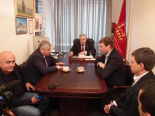 «Штаб КПРФ по оказанию помощи Юго-Востоку Украины с момента его учреждения не прекращал свою работу ни на один день. Сотни машин помощи, собранной нашими коммунистами и сторонниками партии, пересекли уже границу России в направлении ДНР и ЛНР. Медикаменты и продукты питания сейчас очень нужны Новороссии и ее жителям. Гуманитарную помощь ждут, на нее надеются. Трасса Москва-Дон стала самой настоящей дорогой жизни. Об этом теперь знают все: и руководители ДНР и ЛНР, и простые жители, измученные затянувшейся войной, и ополченцы, сражающиеся с порошенковскими карателями. Олег Анатольевич Царев, с которым у нас состоялся разговор, положение Новороссии понимает лучше многих, он глубоко интегрирован в происходящие там процессы. Человек легендарный и мужественный, снискавший уважение миллионов, за свою твердую позицию, за отвагу и стойкость, проявленные им в моменты самых серьезных потрясений на Украине. Мы все очень рады, что этот честный и храбрый человек сегодня находится вместе с нами, и мы вместе с ним вырабатываем стратегию дальнейших действий, в отношении обеспечения жителей Новороссии продуктами и лекарственными препаратами, вопросов вынужденных переселенцев, способствования мирному урегулированию ситуации в ДНР и ЛНР. Олег Царев, безусловно, человек, сердцем болеющий за свой народ. Он прекрасно понимает, что Украина без России не имеет никакого будущего, что без братства славянских народов русский мир обречен на гибель. Именно поэтому он стал на путь борьбы с нацизмом, на путь борьбы за спасение народов, проживающих на территории Украины. В беседе он поднимал множество вопросов, один из которых – положение вынужденных переселенцев. В связи с этим мы приняли решение на следующей неделе вместе посетить ряд регионов Юга России, принявших вынужденных переселенцев из Украины. Планируется посещение пунктов временного размещения в республиках Северного Кавказа, где сейчас проживают тысячи граждан Украины.