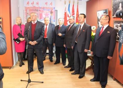 - Первый этап проекта прошел в Центральном Выставочном зале Пхеньяна. Выставка открылась 24 марта 2014 года, в день подписания Соглашения о сотрудничестве КПРФ и Трудовой партии Кореи. Открытие проходило на высоком государственном уровне в центральном Выставочном зале. Выставку посетили руководители государства, послы и представители 21 дипломатической миссии, в том числе Посол России в КНДР, открывавший выставку от имени Российской Федерации. Выставка настолько широко освещалась в Корейских СМИ, что членов нашей делегации даже останавливали на улице и просили сфотографироваться вместе. В экспозиции были представлены фото и видеоматериалы, охватывающие продолжительный период Советско-Корейских отношений, подписание наших соглашений о сотрудничестве во время визитов Ким Ир Сена в Советский Союз в 1949 и 1984 годах.