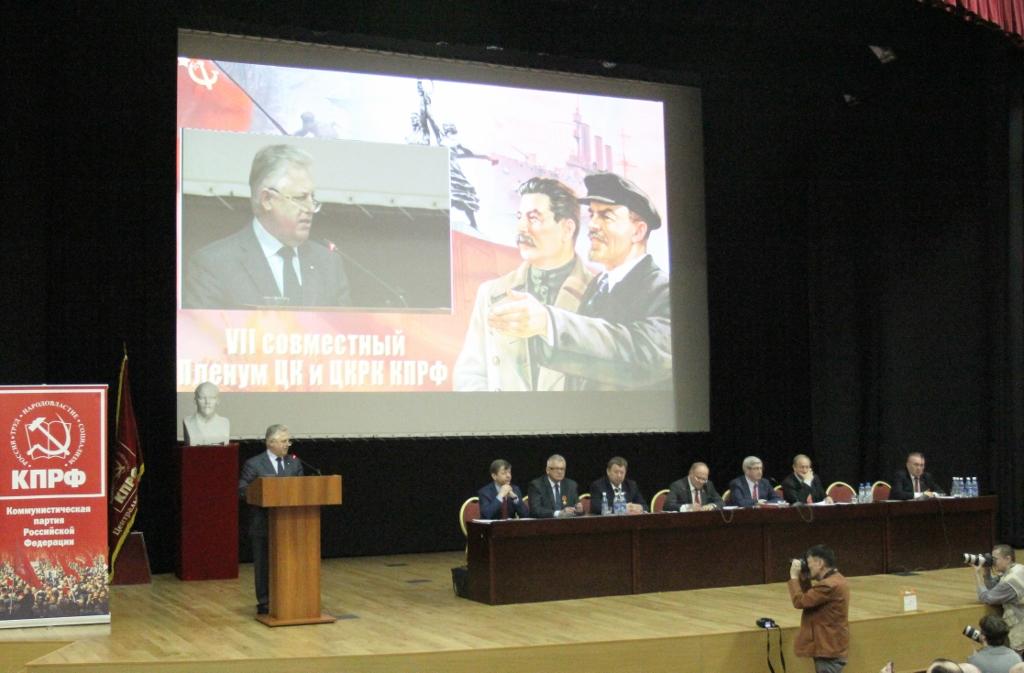 Первый вопрос повестки дня был рассмотрен на Пленуме ЦК КПРФ, на который были приглашены представители всех братских коммунистических партий, входящих в СКП-КПСС. С докладом выступили Председатель ЦК КПРФ Геннадий Андреевич Зюганов, Первый секретарь Компартии Украины Петр Симоненко и Первый секретарь Компартии Беларуси Игорь Карпенко, после чего участники Пленума СКП-КПСС перешли в другой зал и продолжили обсуждение.
