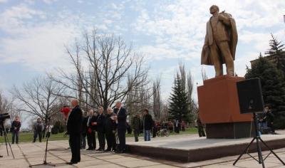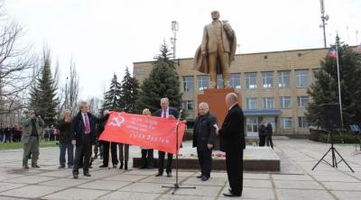 Далее выступил Председатель Компартии Донецкой Народной Республики Борис Литвинов, который сказал: «Владимир Ильич Ленин - как памятник. Он всемирный, он не принадлежит не только нам, не России – он принадлежит всему миру. Потому что за идеями, которые развивал и направил В.И. Ленин, стоит братство, дружба, справедливость, солидарность. За его идеями стоит нормальная жизнь, о которой мечтают миллионы людей во всём мире».
