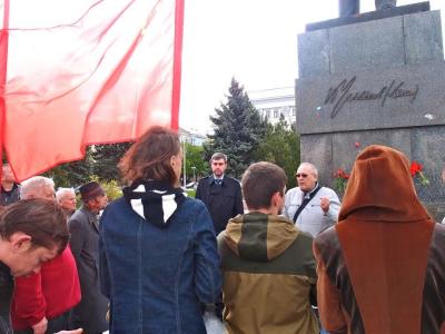 На центральную площадь столицы республики вышли активисты КПЛНР и Союза Коммунистов Луганщины. Перед собравшимися выступили: первый секретарь ЦК КПЛНР Игорь Гуменюк, депутат Народного Совета ЛНР Александр Андриянов, бывший первый секретарь Луганского обкома КПУ Владимир Земляков и другие товарищи. Выступавшие отметили, что Ленин был проницательным теоретиком и практиком в осуществлении самых смелых планов построения социалистического общества. Доверие, которое испытывал народ к большевикам, во многом было обусловлено незаурядной личностью этого человека. Луанск был первым городом царской России, где под руководством Климента Ворошилова победили большевики. И сегодня, Луганск и Донецк, в пролетарских традициях, мужественно держат рубежи русского мира от экспансии запада. Выступавшие заявили о поддержке курса КПРФ и отметили большую роль Геннадия Зюганова, Владимира Кашина и Казбека Тайсаева в становлении Донбасса, пострадавшего от рук укрофашистских оккупантов.
