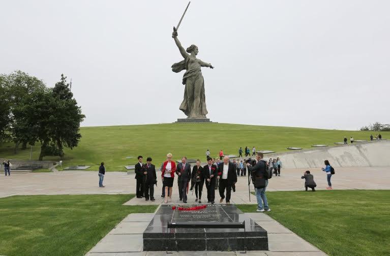 В среду, 1 июня 2016 года, члены делегации ТПК и СКП-КПСС, прибывшие в Волгоград для участия в Круглом столе, посвященном 7-му Съезду Трудовой партии Кореи, возложили венок к памятнику Владимиру Ильичу Ленину, после чего гости посетили Мемориальный комплекс Мамаев Курган. Они ознакомились со всеми композициями Памятника-ансамбля «Героям Сталинградской битвы», в том числе и с всемирно известным монументом «Родина-мать зовет!». К ним присоединилась многочисленная группа пионеров, воспитанников детских домов области, а также школьников из Калмыкии. Эта экскурсия была организована в рамках международного Дня защиты детей.