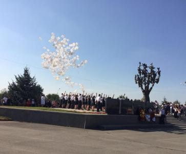 334-х жертв Бесланской трагедии, после чего в небо белым облаком поднялись шары