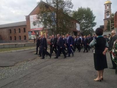 проследовали на кладбище, где к Древу скорби возложили венок и цветы. Первый