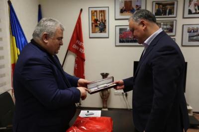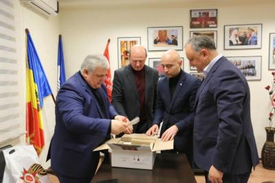 В завершение встречи К.К. Тайсаев от имени лидера народно-патриотических сил России, Председателя ЦК КПРФ Геннадия Андреевича Зюганова поздравил Игоря Додона с победой на президентских выборах и вручил точную копию Знамени Победы, а также сувениры с символикой КПРФ. Особо Игорю Додону понравился сувенирный мультимедийный музыкальный центр «Ретро-Муромец-2», похожий на радиоприемник военных лет, в комплект которого входит флешка с записями песен военных лет, речей Верховного главнокомандующего Иосифа Виссарионовича Сталина, полководцев и сводок информбюро Юрия Левитана.