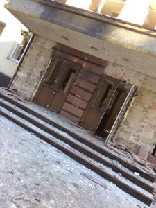 - ул. Политбойцов, 36г -1, 2, 3 этажи без стекол, сбита стена на наискось.