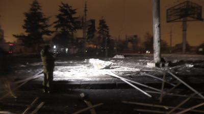 - пр. Киевский, 2 - магазин "Харди-Гарди", попадание рядом, повреждения