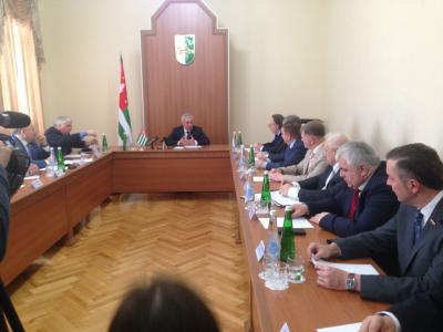 Республики Абхазия Раулем Хаджимбой, с членами Парламента, а также с руководящим