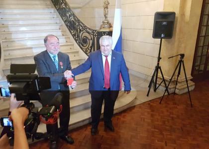 На торжественном приеме, устроенном по случаю Конференции нашим посольством в Мексике, депутат Госдумы К.К. Тайсаев в торжественной, дружеской обстановке, под аплодисменты участников форума, от имени Геннадия Андреевича Зюганова, всех членов фракции КПРФ в Госдуме вручил Э.Р. Малаяну памятную медаль в честь 100-летия Великой Октябрьской социалистической революции. Так была отмечена его огромная работа по отстаиванию интересов Российской Федерации в Мексике. Медаль была принята с особой признательностью и благодарностью.