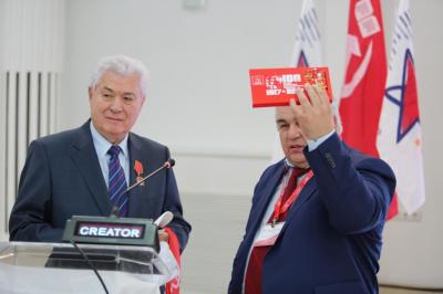 Депутат, поблагодарив Председателя ПКРМ В.Н. Воронина за направление в Россию для участия в торжественных праздничных мероприятиях представительную делегации, вручил ему юбилейную медаль в честь 100-летия Великой Октябрьской Социалистической Революции. И передал участникам конференции наилучшие пожелания от Председателя ЦК КПРФ Г.А. Зюганова.