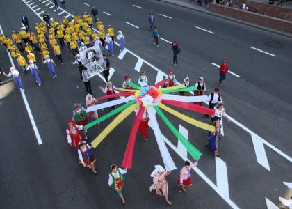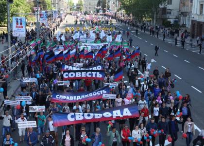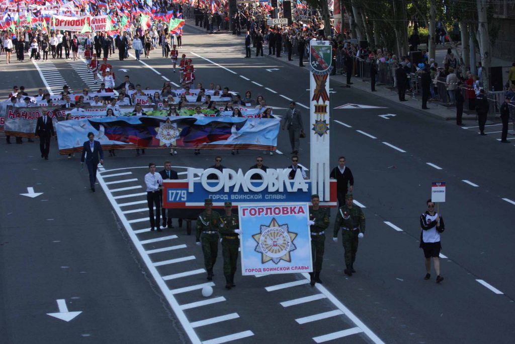 11 мая на главной улице столицы ДНР прошло грандиозное шествие, посвященное четвертой годовщине образования Донецкой Народной Республики. Праздничное шествие открыли участники автомотошоу. Затем шествие продолжили депутаты Народного Совета ДНР, представители городов и районов Республики — почетные граждане, работники промышленных предприятий, транспортной отрасли, здравоохранения, социальной сферы, деятели культуры, сферы обслуживания, активисты общественных организаций и общественных движений ДНР, Федерации профсоюзов. По центру города прошли десятки тысяч человек, участники шествия несли флаги ДНР, России, флаги коммунистической партии Донецкой Народной Республики, транспаранты.