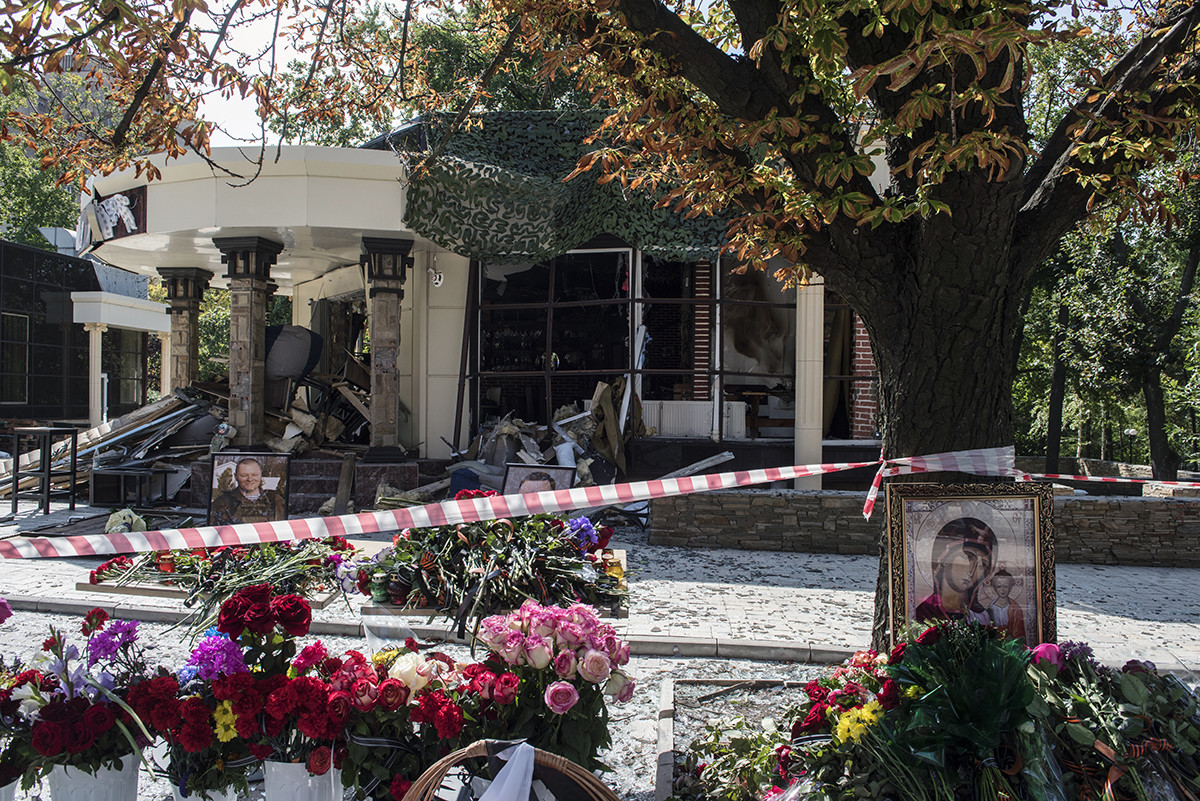 возле кафе в центре Донецка, где 31 августа произошел взрыв, унесший жизнь