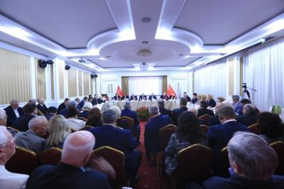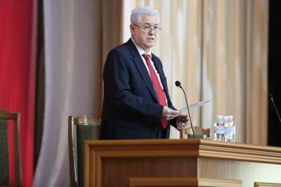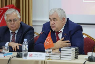 Первый заместитель Председателя ЦС СКП-КПСС, Секретарь ЦК КПРФ, член Комитета Государственной Думы по делам СНГ, связям с соотечественниками и евразийской интеграции Казбек Куцукович Тайсаев в своем приветствии поздравил присутствующих со знаковым событием, передал привет от руководства ЦС СКП-КПСС и ЦК КПРФ, озвучил Приветственный адрес от Председателя ЦС СКП-КПСС, Председателя ЦК КПРФ, руководитель фракции КПРФ в Госдуме ФС РФ Геннадия Андреевича Зюганова: